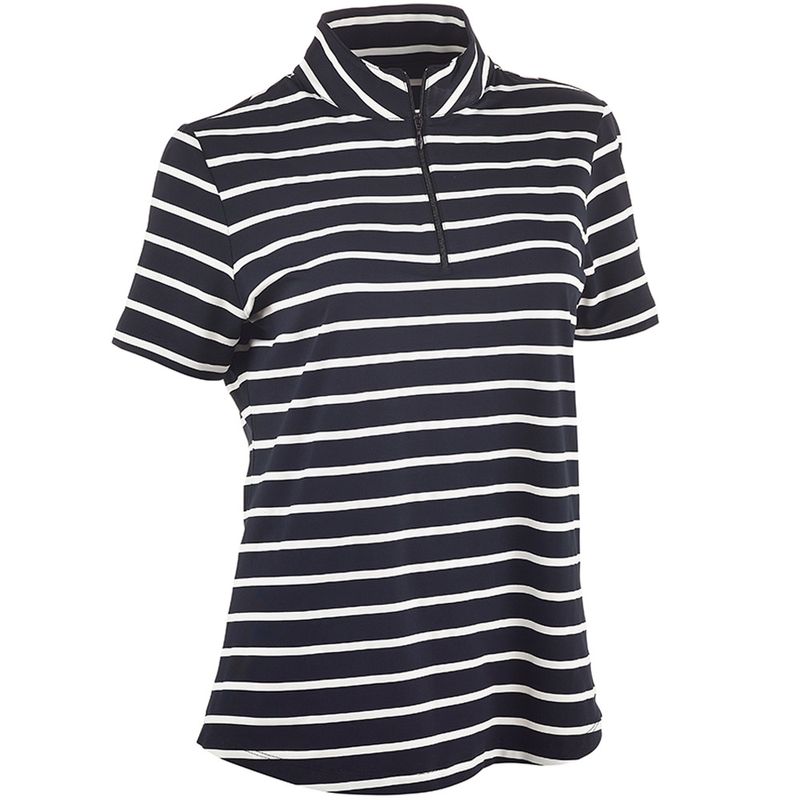 IBKUL Women's Short Sleeve 1/4-Zip Mock Neck Top - Wide Stripe